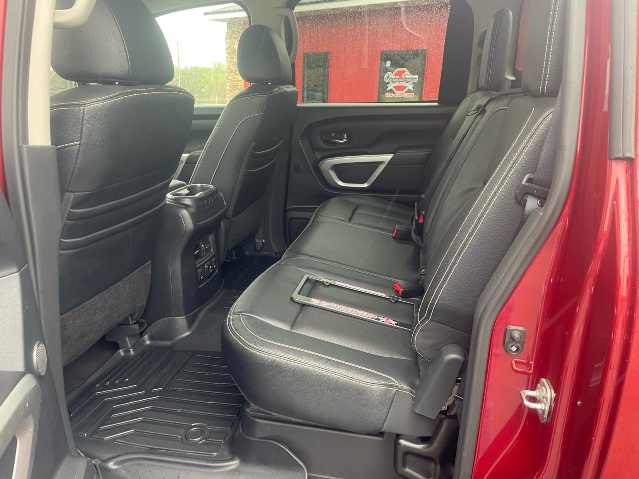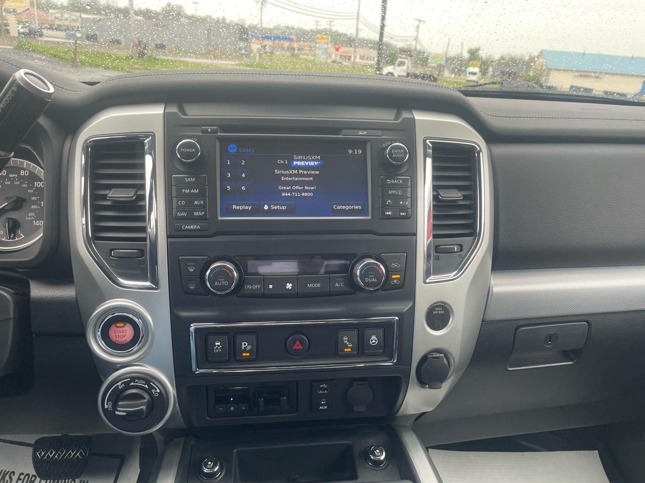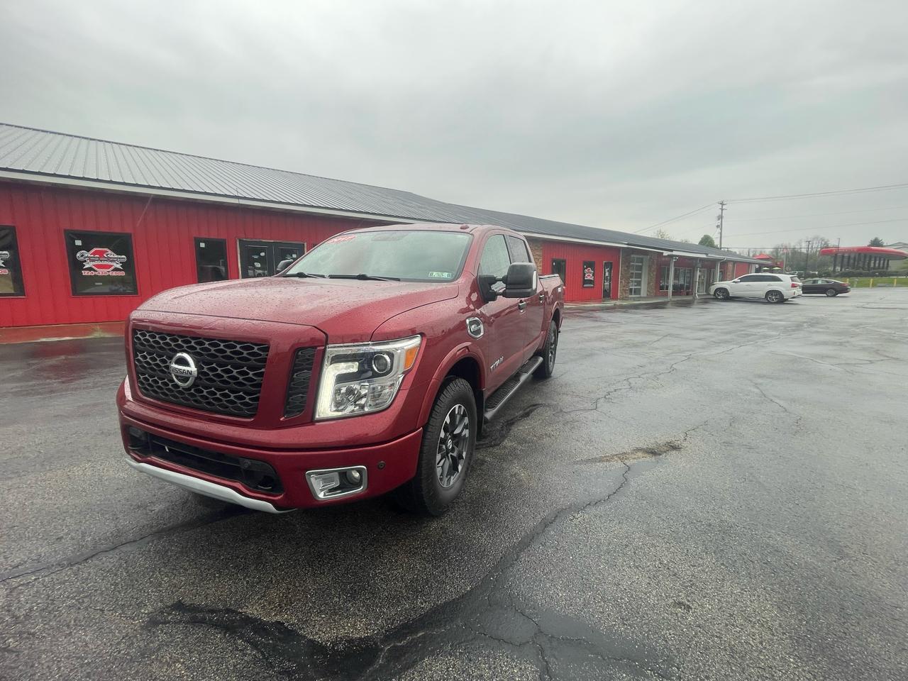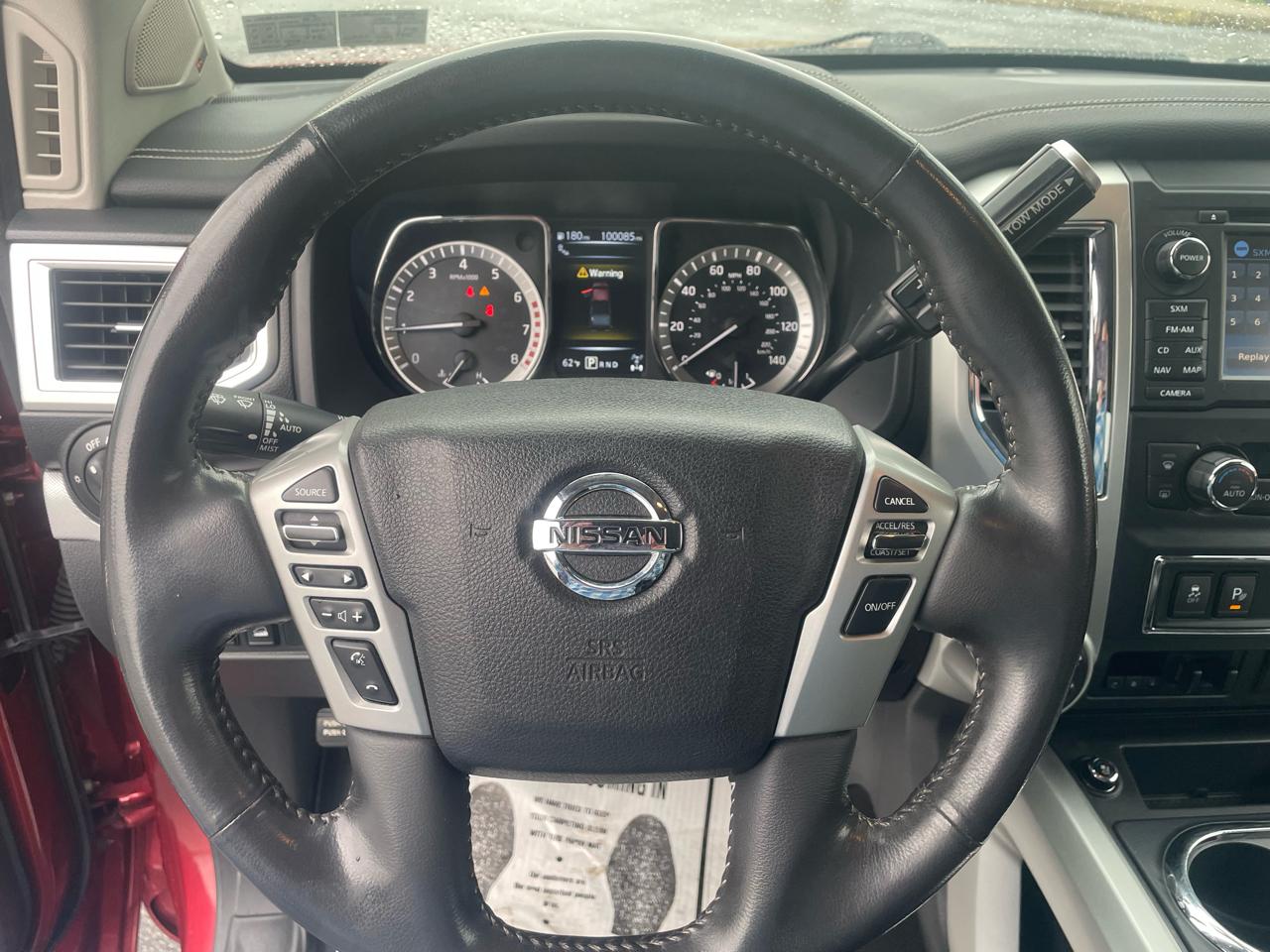 Introducing a vibrant Red 2017 Nissan Titan that's ready to conquer any terrain with its robust 5.6L V8 engine and part-time four-wheel drive capability. This truck is equipped with a plethora of features designed to elevate your driving experience, from the driver-selectable rear locking differential to the off-road suspension system that ensures a smooth ride even on the toughest roads. Whether you're towing heavy loads or cruising around town, this Titan is up for the challenge with its impressive towing capacity and class IV towing equipment.Not only does this Nissan Titan deliver outstanding performance, but it also offers a comfortable and well-equipped interior. The spacious cabin features premium cloth seating, dual-zone air conditioning, and a leather-wrapped steering wheel for added luxury. Stay connected and entertained on the go with the SiriusXM Traffic real-time traffic display and 2 LCD monitors.